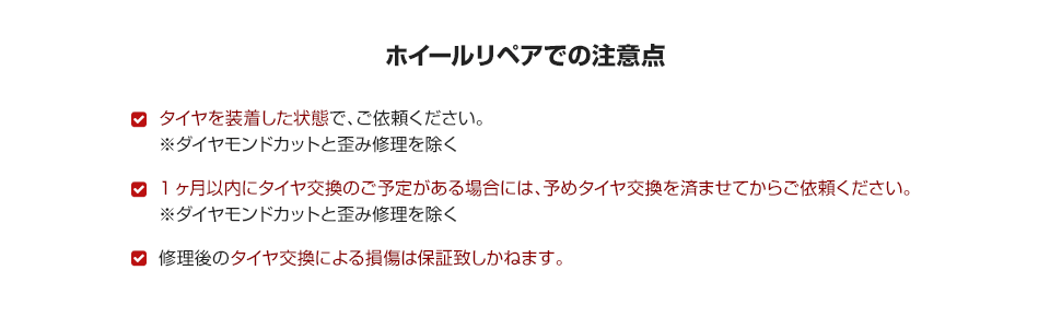 仮に施工が出来ないホイールの場合には、施工をせずに、ご返却(ご返送)となります。あらかじめ、ご了承ください。